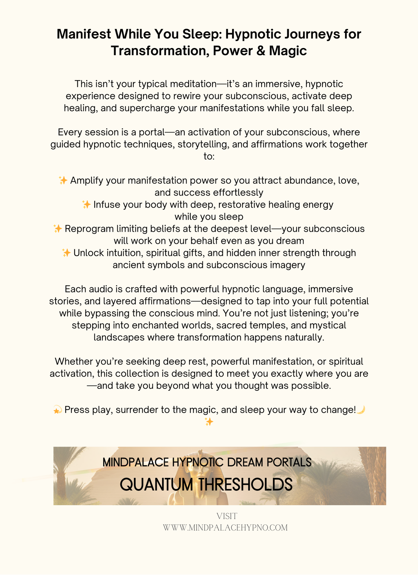 Quantum Thresholds is a customized guided sleep audio designed to activate your manifestation energy in a powerful way.